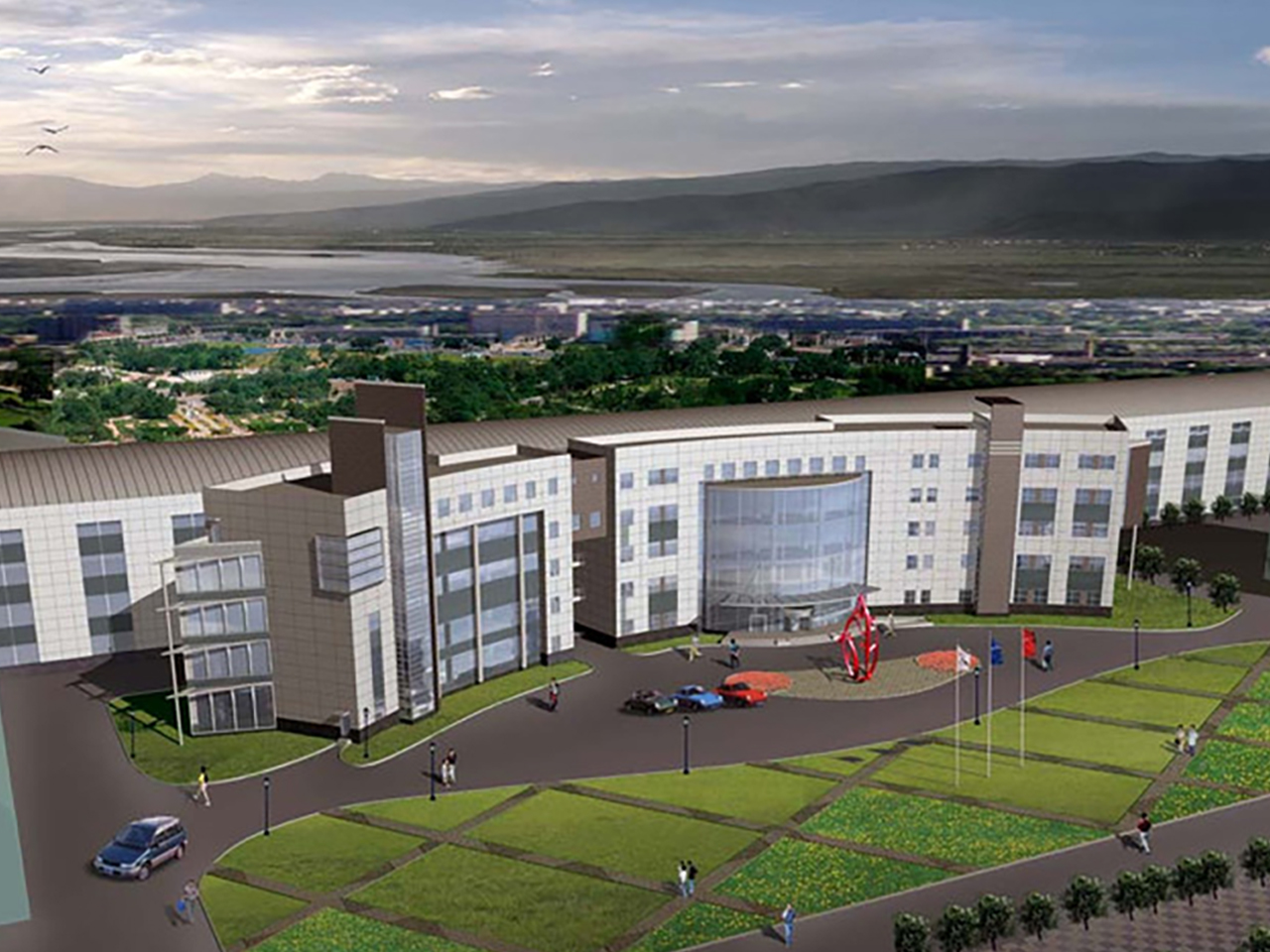 科技園項(xiàng)目一期總建筑面積約22.5萬平方米,包含6棟研發(fā)樓和2層地下車庫(地下共3層,一二期地下相互聯(lián)通),還設(shè)有下沉廣場(chǎng)和商鋪,敞亮的下沉廣場(chǎng)將所有建筑連在了一起。T6樓設(shè)置了戶外屋頂花園,特別鋪設(shè)